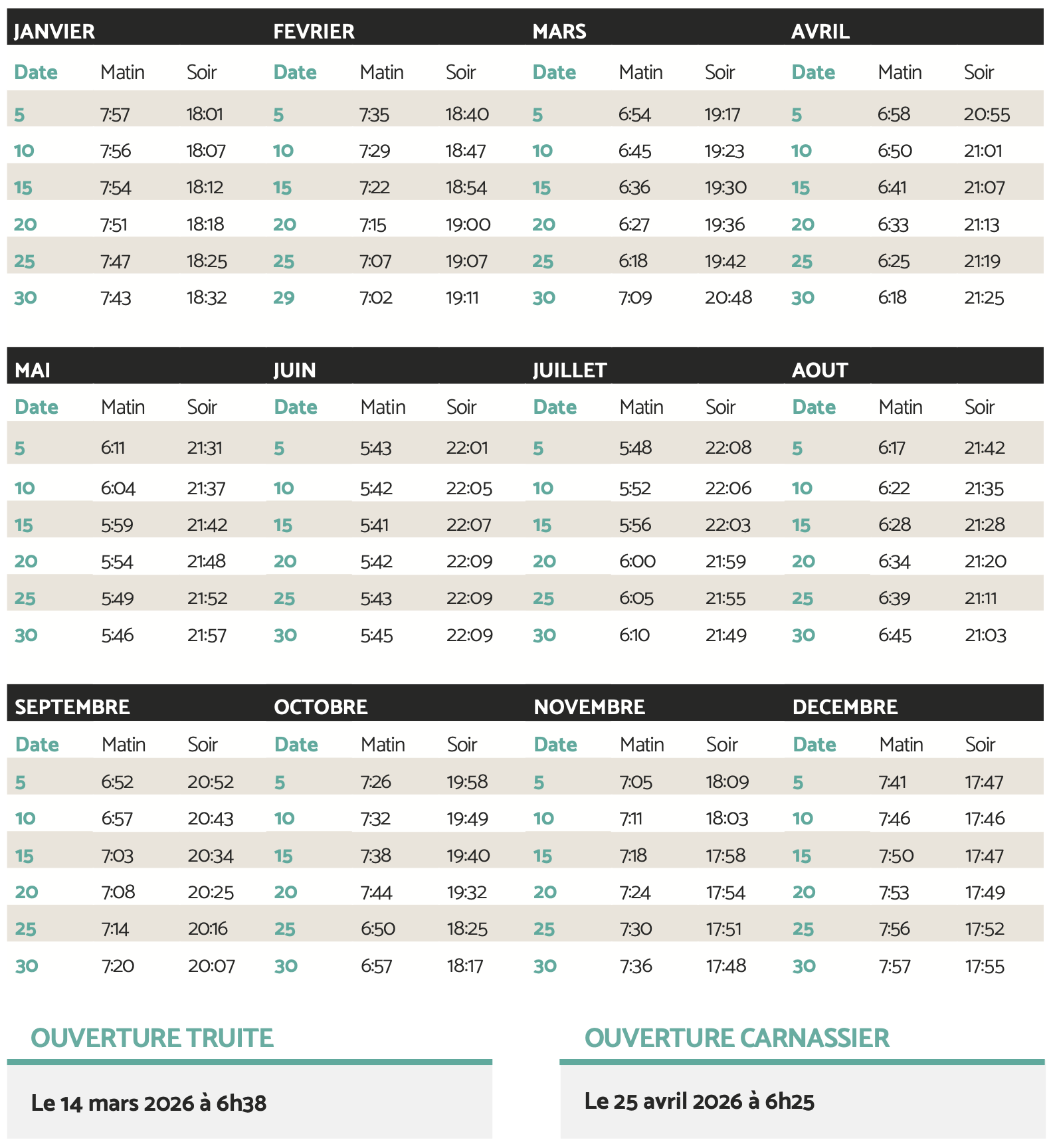 Heures légales de pêche en 2026 - Fédération de pêche de Haute-Garonne