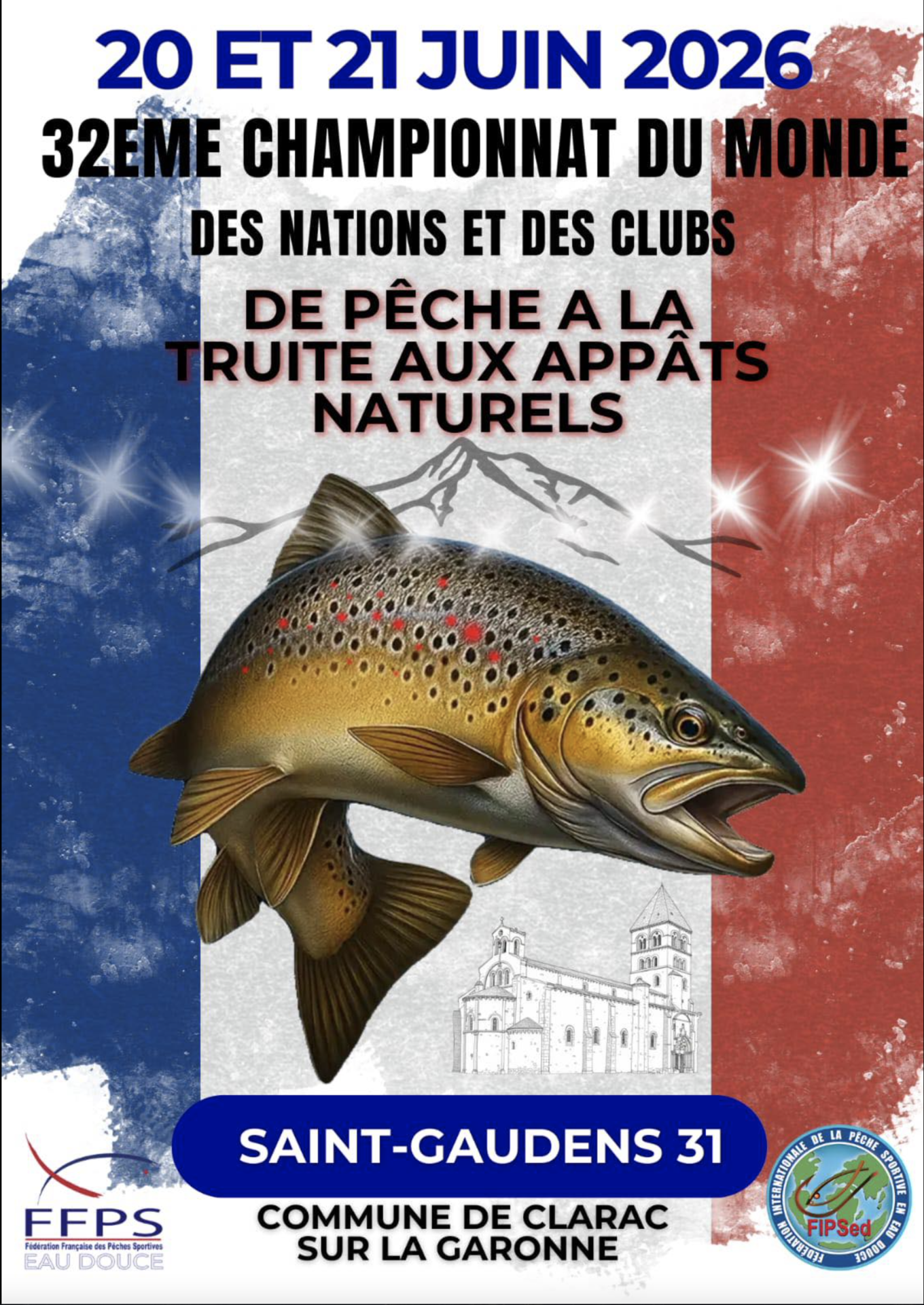 Les 20 et 21 juin 2026, l’AAPPMA de Saint-Gaudens, en collaboration avec l’AAPPMA de Montréjeau, participe à l’organisation du 32ème Championnat du Monde de pêche de la truite aux appâts naturels, sur la Garonne à Clarac.